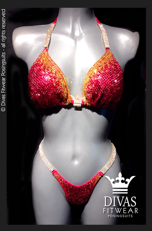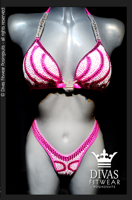 I am so happy with the bikini that I have hired from Divas. The bright pink / purple colours with the gems to set it off was very pretty. The bikini was also a lovely quality. The clips, to attach the bikini straps to the bottoms have a design whereby you know they will not come apart on stage. I feel very confident in the suit which is down to the fit. Babet has taken the time with me to ensure a good fit and the customer service has been excellent. I will be back. Thank you.