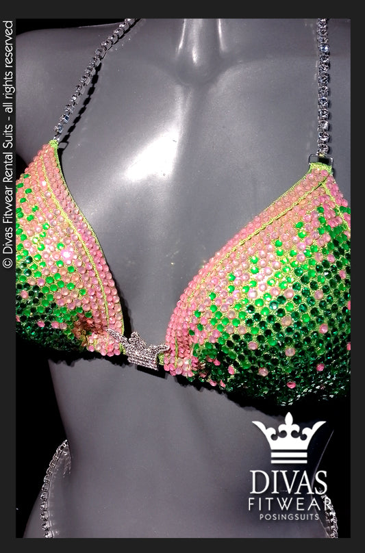 I am so happy with the bikini that I have hired from Divas. The bright pink / purple colours with the gems to set it off was very pretty. The bikini was also a lovely quality. The clips, to attach the bikini straps to the bottoms have a design whereby you know they will not come apart on stage. I feel very confident in the suit which is down to the fit. Babet has taken the time with me to ensure a good fit and the customer service has been excellent. I will be back. Thank you.
