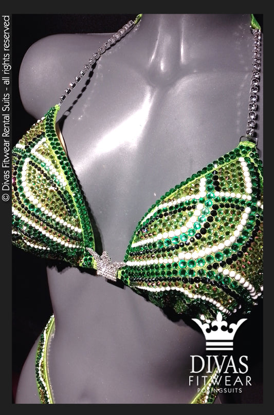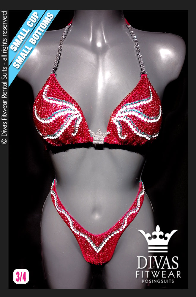 Loved the Frozen bikini from Diva's! Stunning suit with sparkles and pearl style decoration. Love the clips on the bikini bottoms, there is no way of the clips coming apart giving confidence on stage. Lovely fit and Babet did send some fillers if i needed them. I would definitely hire this suit again. Loved it.