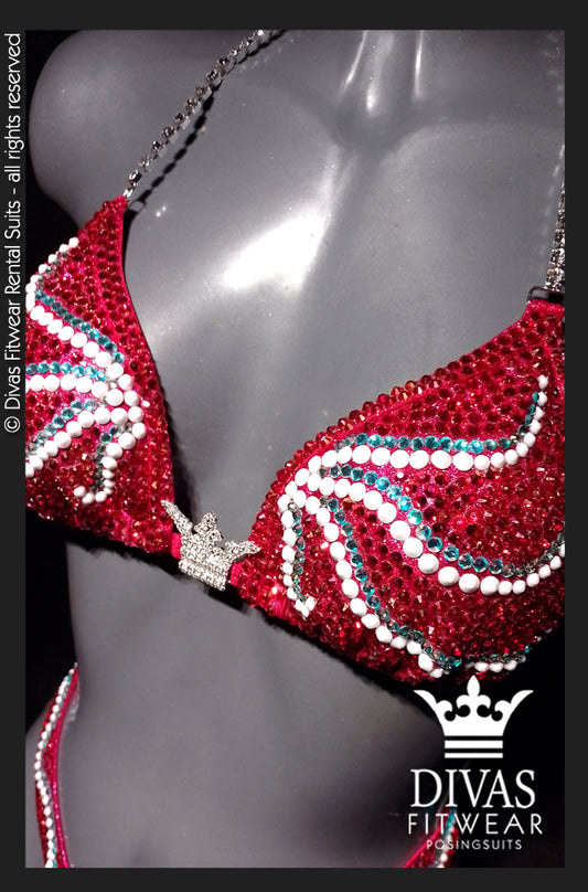 Loved the Frozen bikini from Diva's! Stunning suit with sparkles and pearl style decoration. Love the clips on the bikini bottoms, there is no way of the clips coming apart giving confidence on stage. Lovely fit and Babet did send some fillers if i needed them. I would definitely hire this suit again. Loved it.